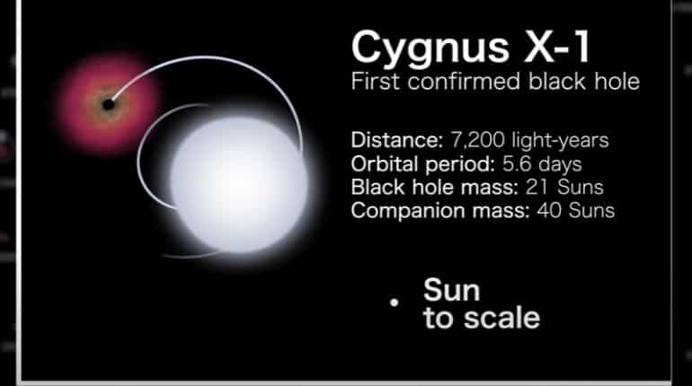 .Cygnus X-1’s companion star is a blue supergiant variable star that orbits every 5.6 days at just one-fifth of the sun-Earth distance.